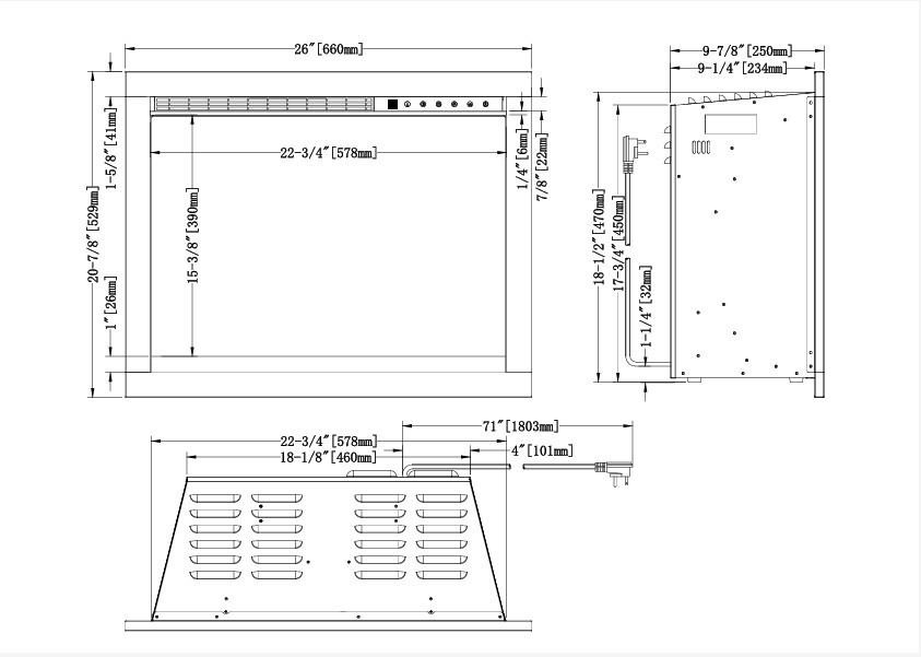 The Modern Flames Redstone Single-Sided Electric Fireplace – 26” plugs into a standard, 120-volt outlet and quickly warms your space with its energy-efficient, 5,000-BTU heater. You can easily slide it into an existing zero-clearance wood burning fireplace or recess it into a wall with a 10-inch depth for a clean, flush-mount finish. Variable and thermostatically controlled heat, a shutoff timer, built-in controls, and a hand-held remote provide maximum comfort and convenient operation.