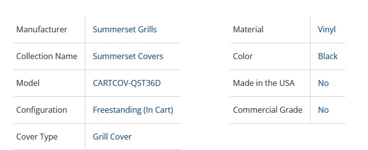 - Custom fitted for Summerset Quest 36-inch freestanding gas grills