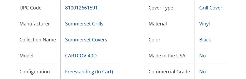 - Custom fitted for Summerset TRL 38-inch freestanding gas grills & 40-Inch Sizzler Freestanding Gas Grills