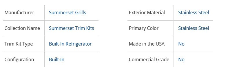- Upgrade the appearance of your outdoor kitchen with the Summerset Stainless Trim Kit for 22-Inch Series Refrigerators. Made from durable 304 stainless steel, this trim kit offers a sleek and modern look that will enhance the overall aesthetic of your grilling space.