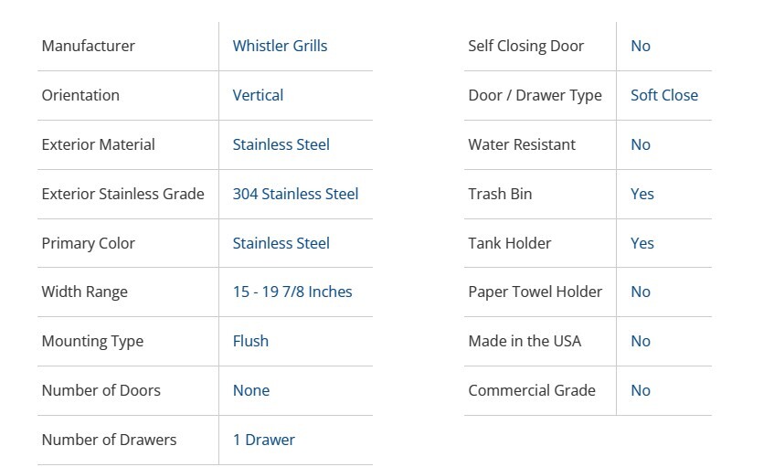 Whistler 16.5-Inch Stainless Steel Trash Drawer/Propane Tank