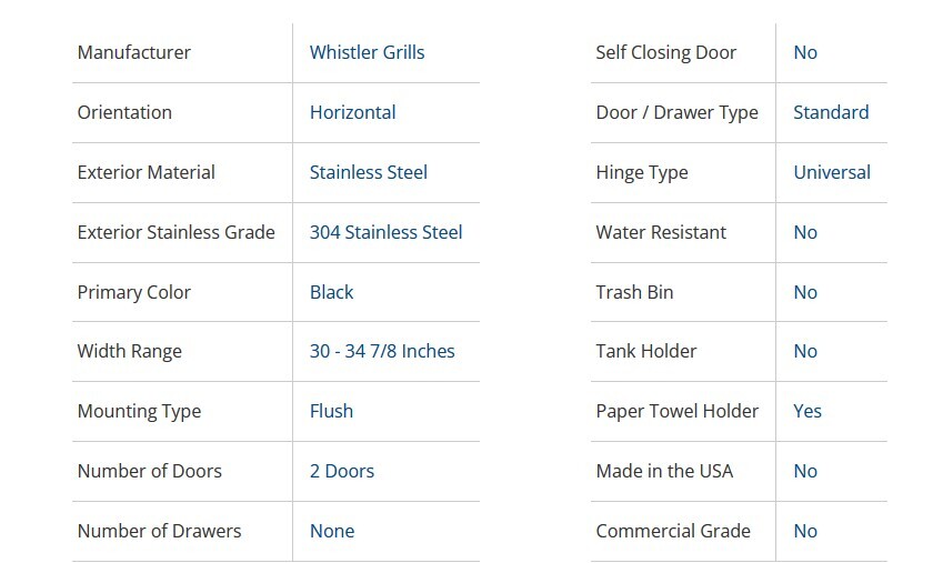 Whistler 33 x 22 Inch Black Stainless Steel Double Access Doors
