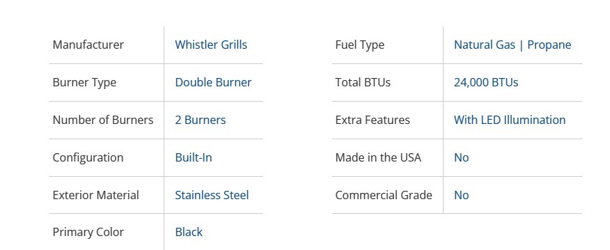 - This outdoor double side burner is compatible with the Whistler 5-Burner built-in style outdoor prime gas grill